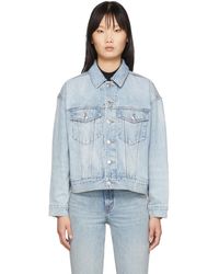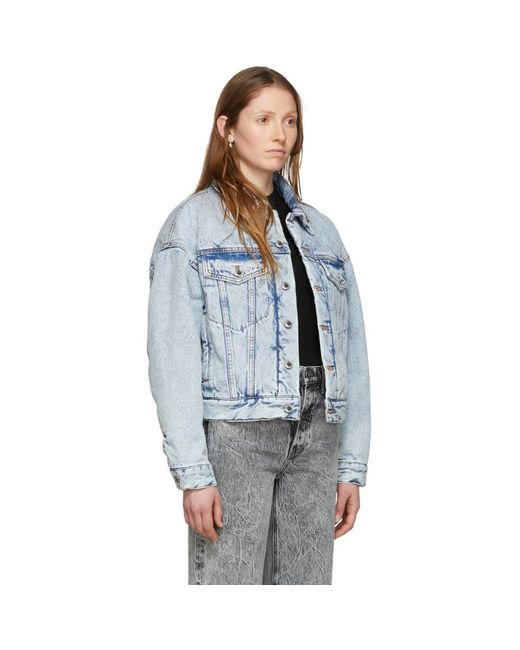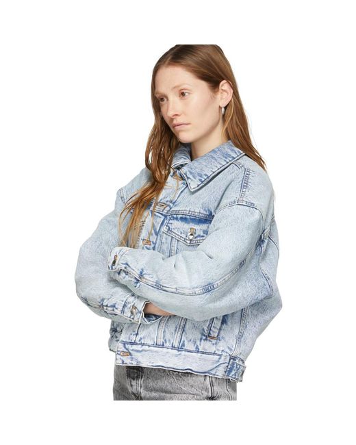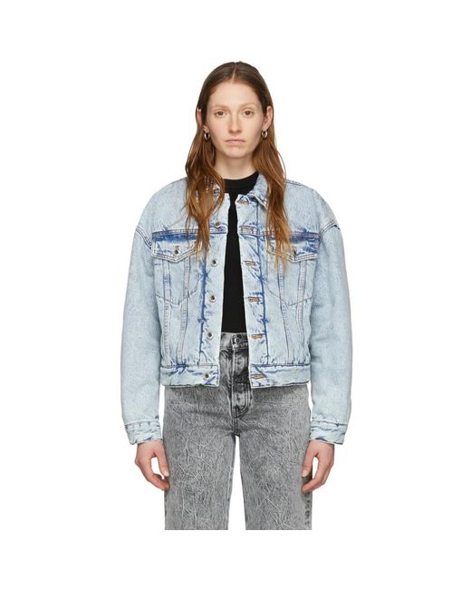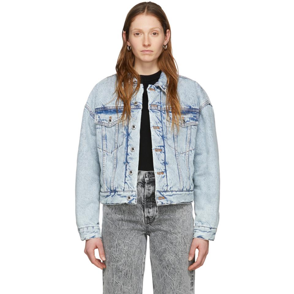 レディース ブルー デニム パッド トラッカー ジャケット